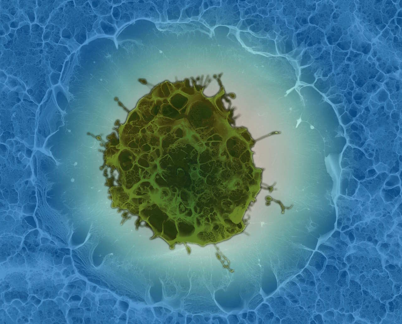 Сканувальна електронна мікроскопія стовбурової клітини — їх планують використовувати для відновлення рухових і розумових здібностей людей із нейрологічними порушеннями. Sílvia A Ferreira, Cristina Lopo and Eileen Gentleman, KCL / Wellcome Collection