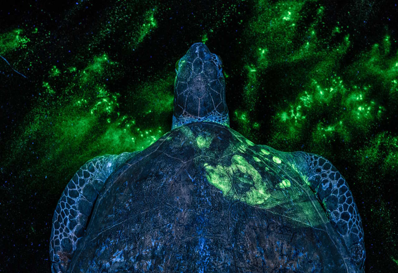 Переможцем у категорії «Людина та природа» стало фото зеленої черепахи, на панцирі якої видно людський відбиток. За допомогою флуоресцентних барвників й ультрафіолетового випромінювання захисники дикої природи виявляють відбитки браконьєрів, які загрожують цьому виду.