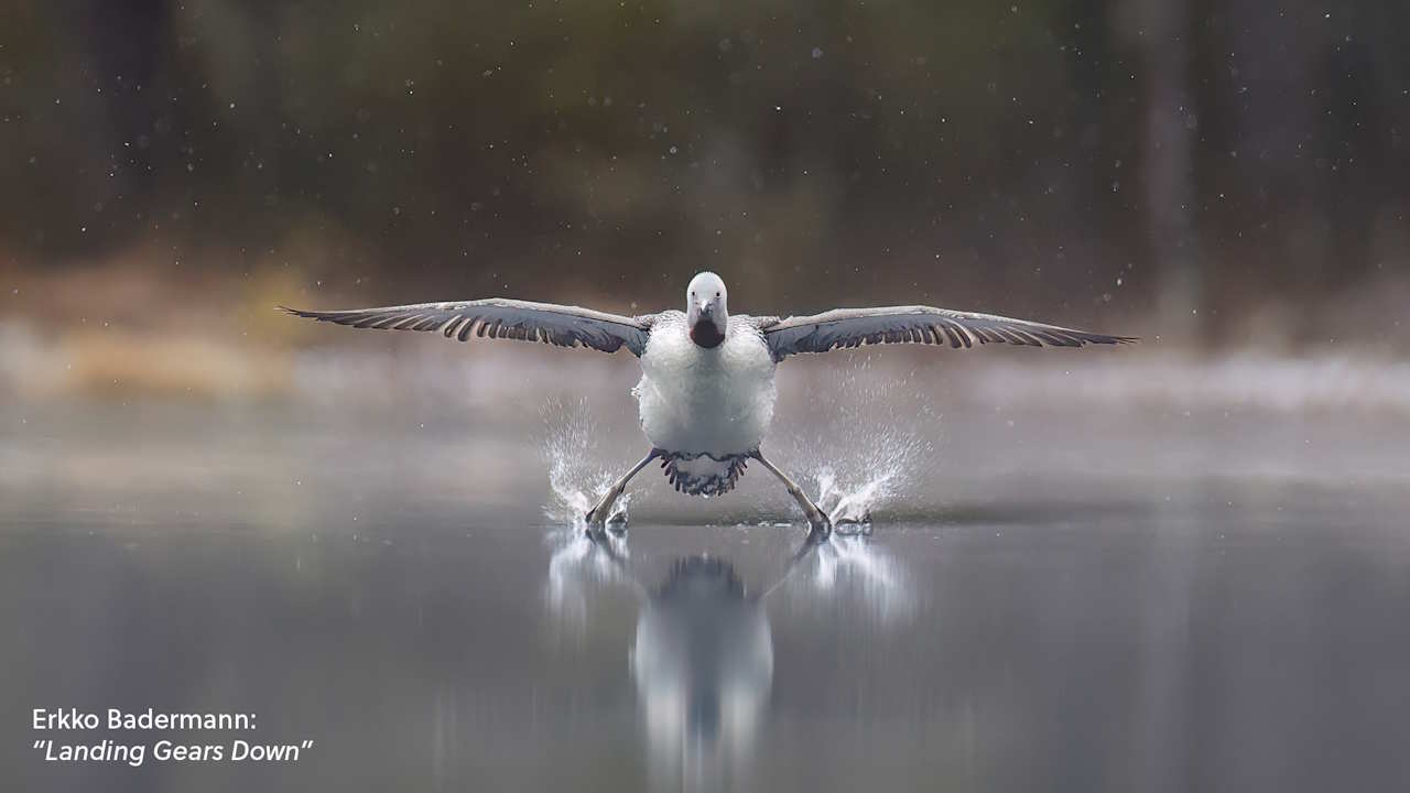 Оскільки водоплавні птахи гагари не найкращі літуни, під час посадки на воду вони покладаються на витягнуті назад ноги, що дозволяють їм зберігати рівновагу