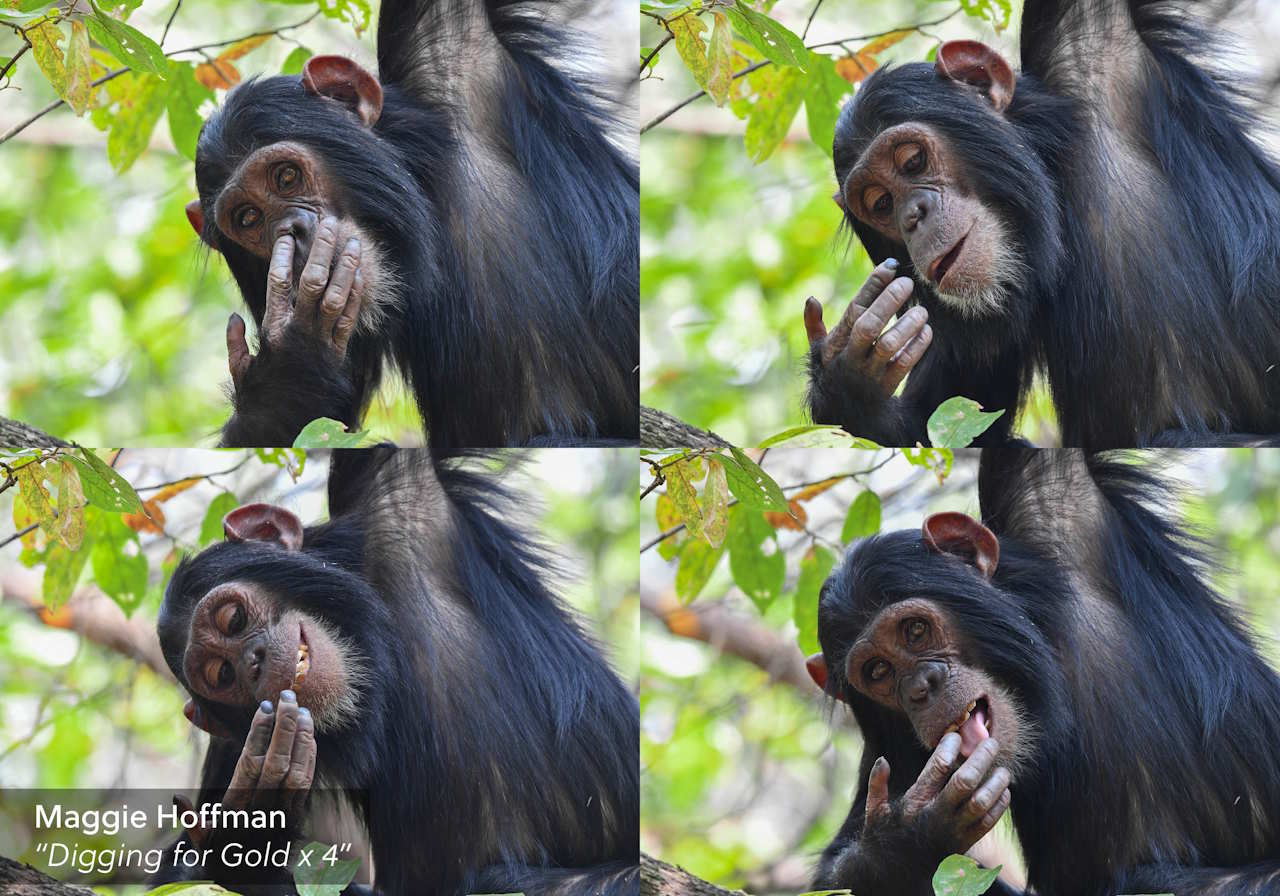 Фотографка зафіксувала, як шимпанзе з Танзанії поколупався в носі та облизав після цього свої пальці