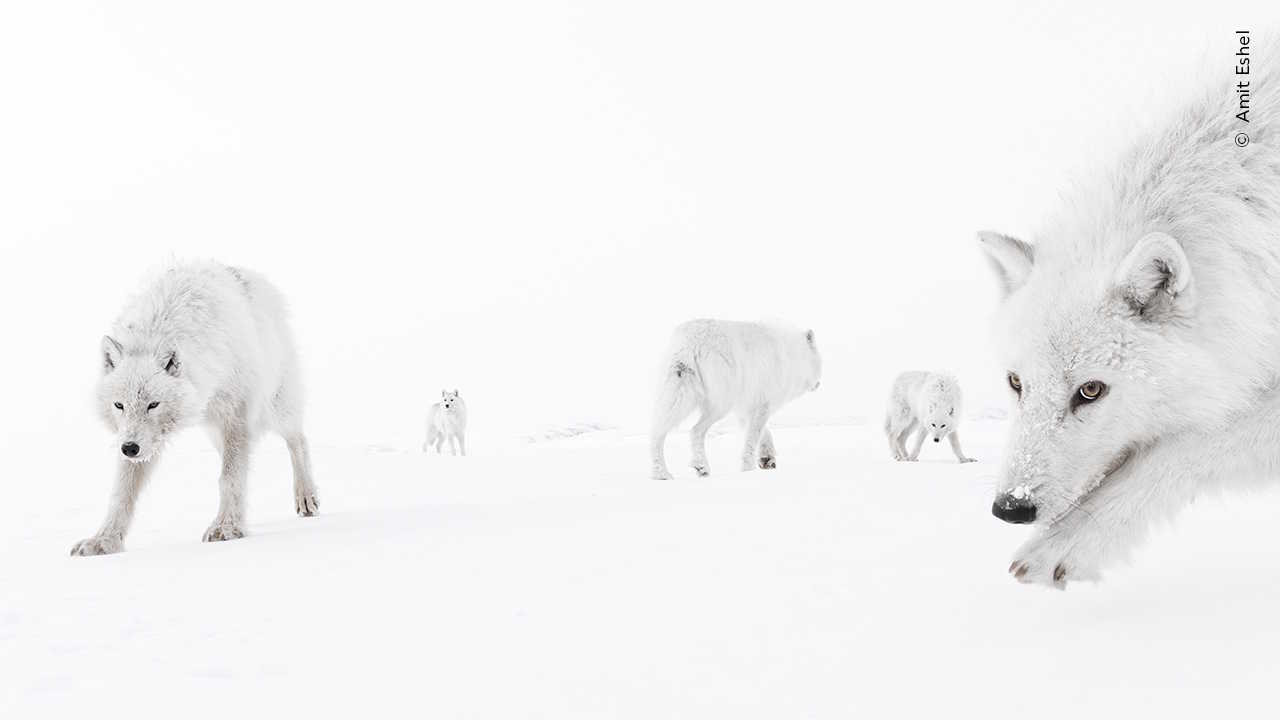 Полярні вовки не часто стикаються з людьми, тому зустріч із ізраїльським фотографом зацікавила цю зграю. Вони підійшли до нього так близько, що він зміг відчути їхній подих. І навіть мороз в -35 градусів Цельсія не затьмарив захоплення моментом.