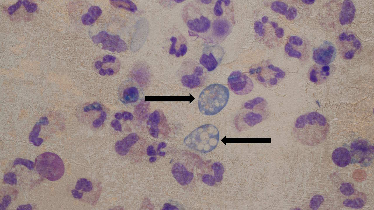 Неглерія фоулера (відмічена стрілочками) серед людських клітин. Dr. James Roberts / Children’s Healthcare of Atlanta