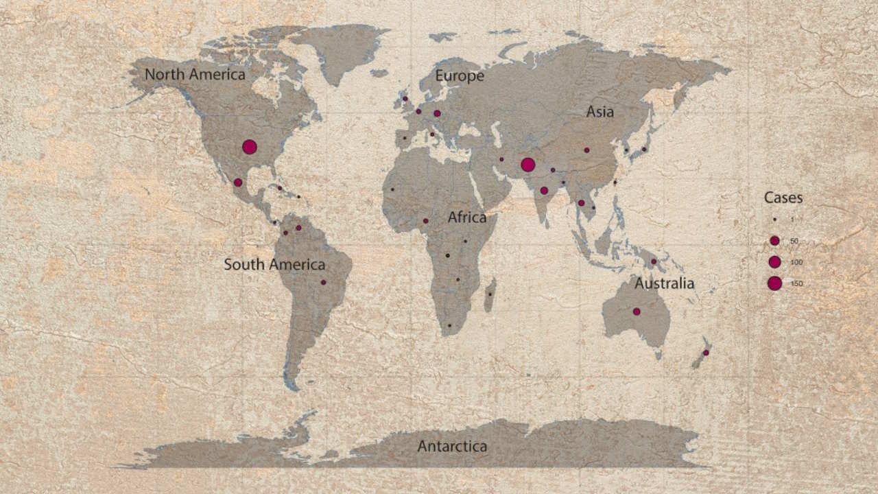 Географічний розподіл зареєстрованих випадків первинного амебного менінгоенцефаліту в період з 1962 по 2023 рік. На карті позначені регіони з найвищою частотою зараження цим патогеном. ScienceDirect