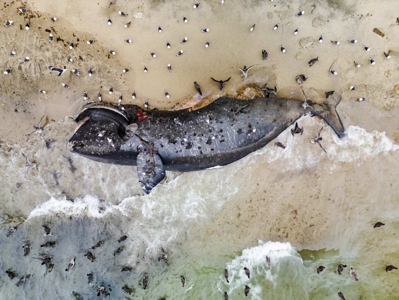 Документальний фільм «Зіткнення» від Ocean Souls Films досліджує удари суден — одну з головних причин загибелі великих китоподібних. Цей молодий південний гладкий кит також загинув після удару рибальського судна в голову.