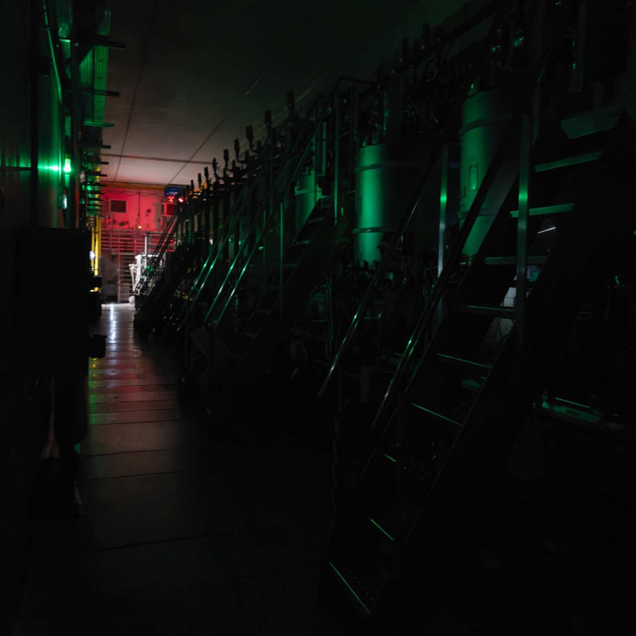 Коли на французькому Великому прискорювачі важких іонів припиняється робота, його приміщення освітлені лише нічниками та лампами в обладнанні, що створює атмосферу відпочинку.