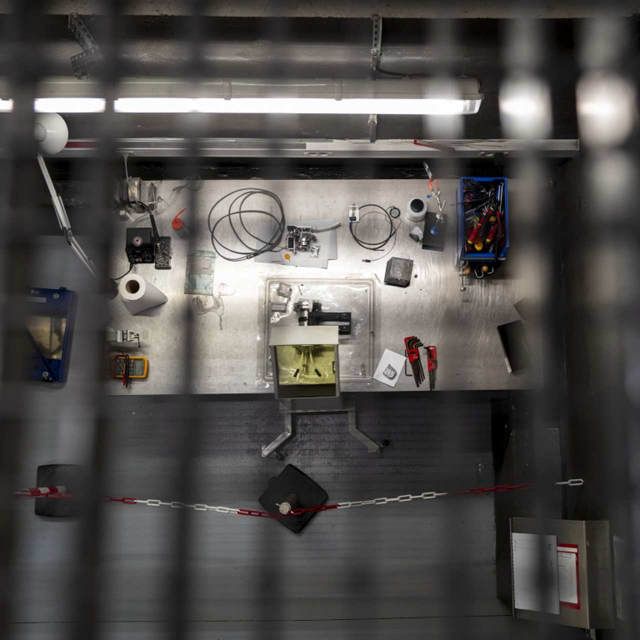 Такий вигляд має звичайне робоче місце науковця інституту ядерних досліджень Національного центру наукових досліджень у Франції. Зроблене згори, з вентиляційної шахти, це фото дозволяє зазирнути в повсякдення фізиків.