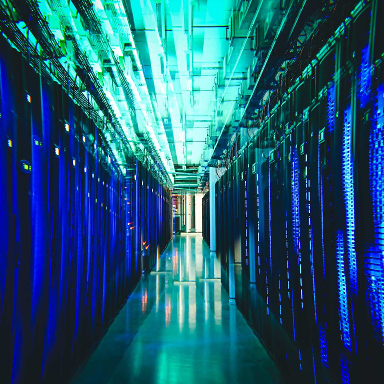 Фото дата-центру, який використовують для обробки величезних масивів інформації з фізичних експериментів, у розсіяному світлі, що створює ефект калейдоскопа.