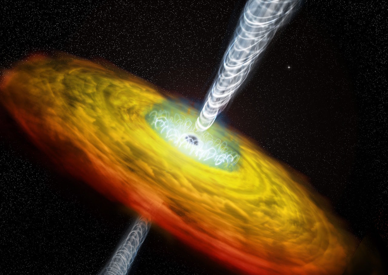 Художнє зображення активного ядра галактики — блазара. Такий об'єкт міг бути джерелом високоенергетичного нейтрино. NASA / CXC / M. Weiss