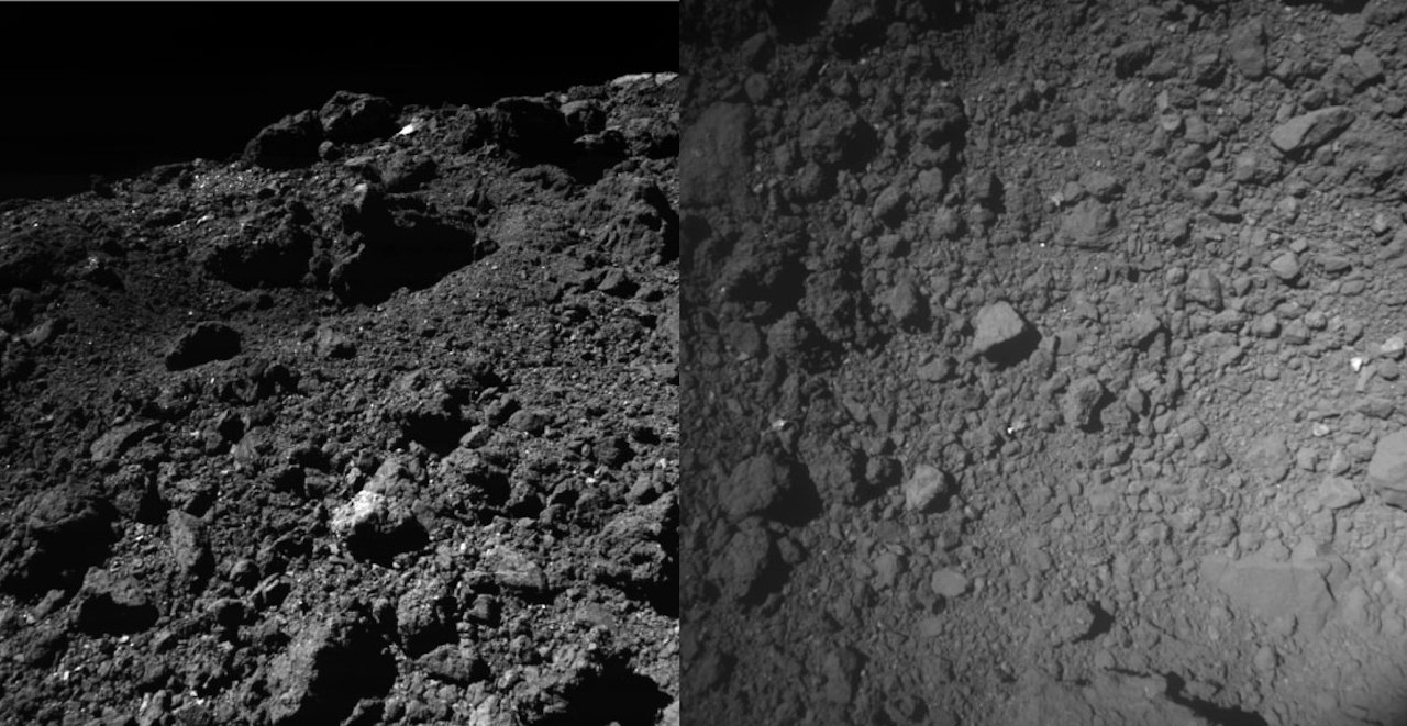 Фото поверхні астероїда Рюґу з апарата «Хаябуса-2». JAXA, Chiba Institute of Technology, University of Tokyo, Kochi University, Rikkyo University, Nagoya University, Meiji University, University of Aizu, AIST