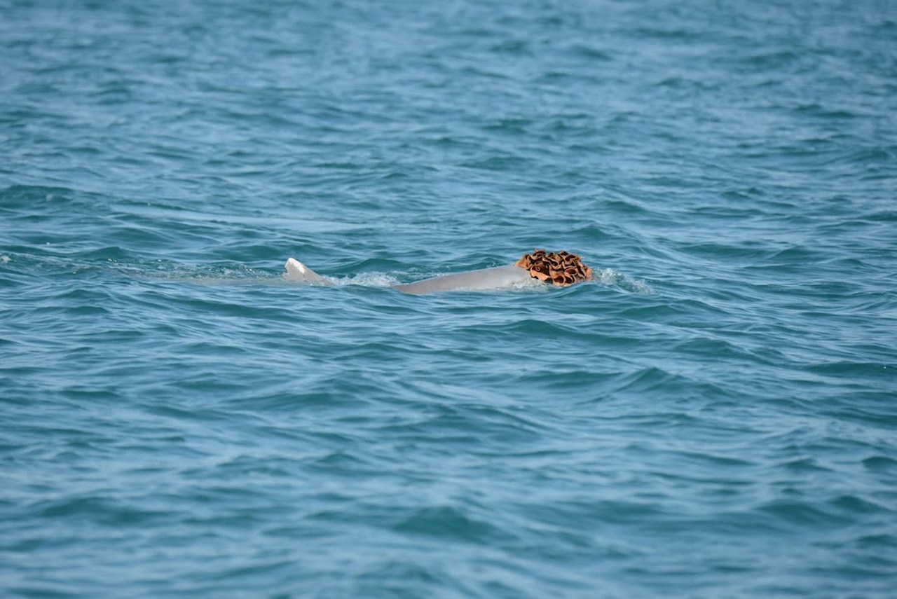 Самець австралійського горбатого дельфіна з «перукою» з губок на голові. Department of Biodiversity, Conservation and Attractions / Instagram