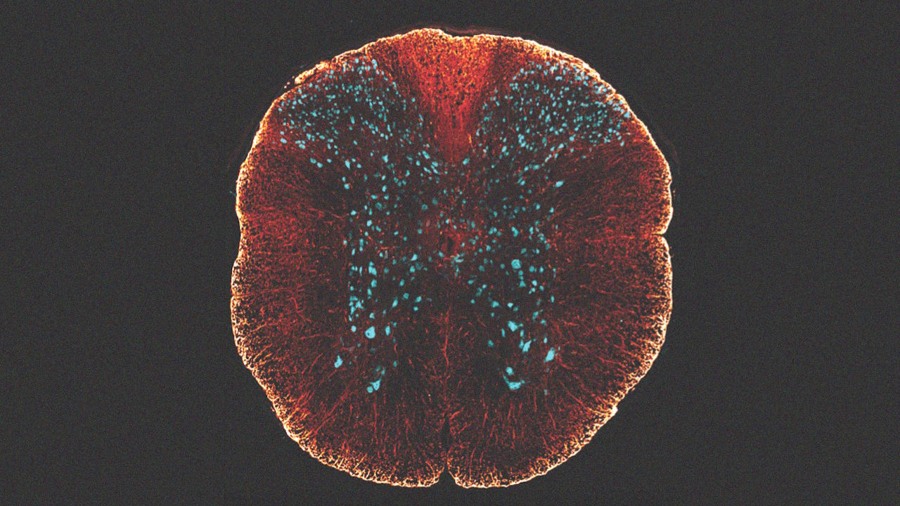 Зріз спинного мозку миші. Саме його нейрони уражаються через спінальну м'язову атрофію. Diogo Paramos-de-Carvalho