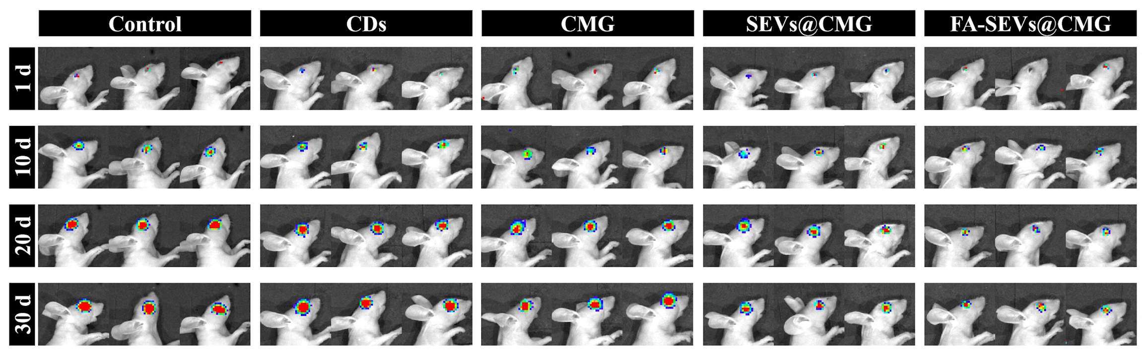 Далі всередину екзосом помістили власне ліки — комплекс із вуглецевих точок, діоксиду марганцю та ферменту глюкозооксидази, які мали вбити ракові клітини. Щоб ліки не нашкодили здоровим клітинам, поверхню екзосом модифікували так, щоб вони зв’язувалися з фолієвою кислотою, якої значно більше на поверхні пухлинних клітин ретинобластоми, ніж на здорових. Коли ті самі ліки доставили без екзосом, ріст пухлин не припинився, бо вони просто не змогли дістатися ракових клітин. Водночас після введення ліків в екзосомах у клітинах ретинобластоми запускалися процеси самознищення.