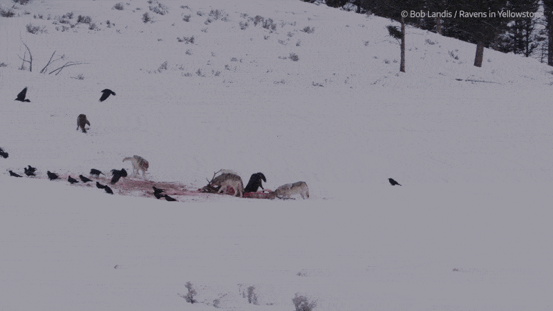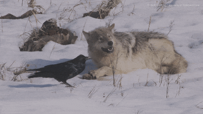 Люди протягом довгого часу помічали, що на місці вбивства тварини зграєю вовків одразу з’являються круки (Corvus corax). Це пояснювали тим, що круки стежать за вовками, але науковці вирішили перевірити цю гіпотезу в Єллоустоунському природному парку, куди вовки повернулися лише у середині 90-х. Для цього вони протягом двох з половиною років стежили за 20 вовками та 69 круками, на яких начепили датчики з GPS.