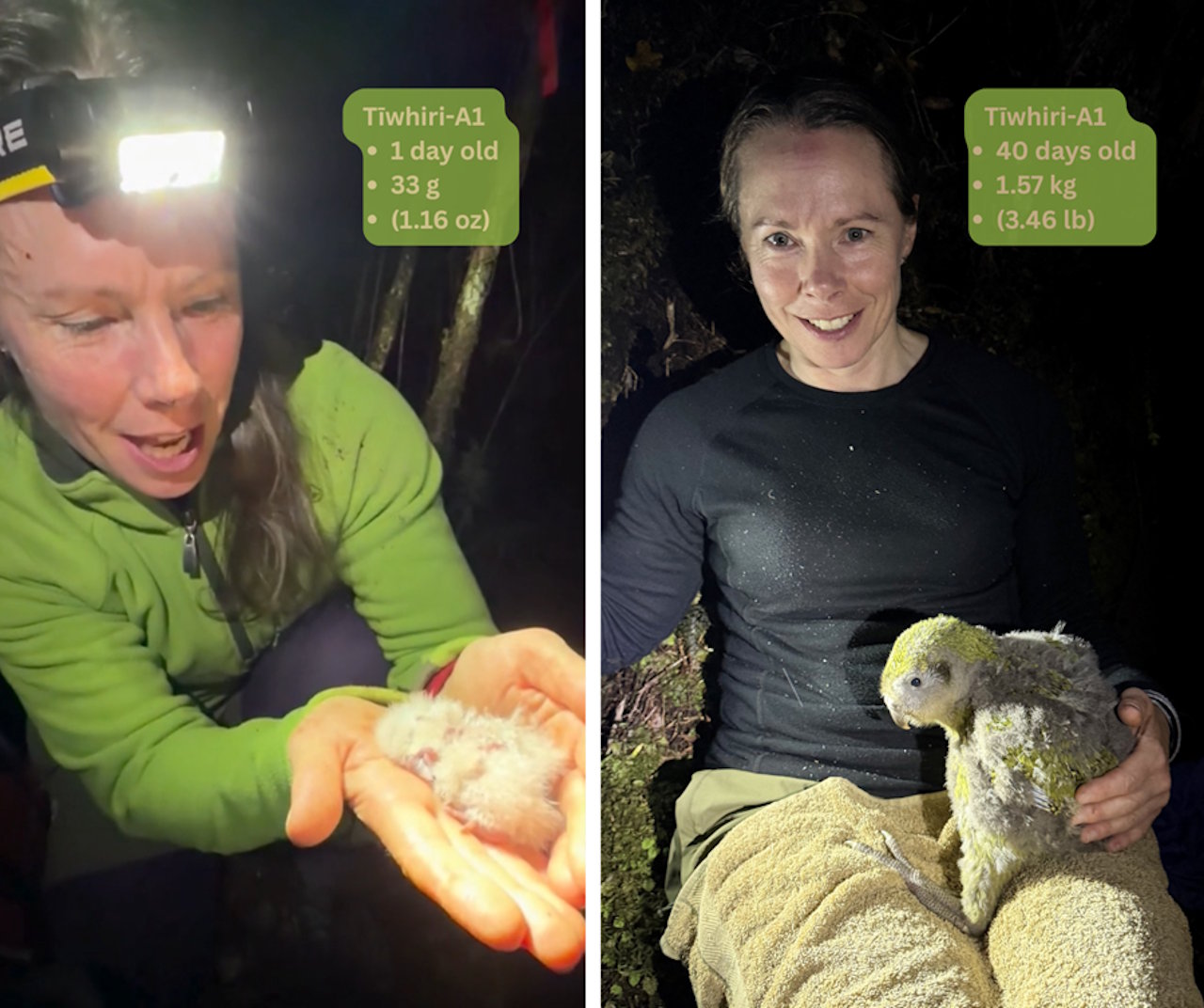Перше пташеня цього року в перший день після народження та у віці 40 днів. Department of Conservation (NZ)