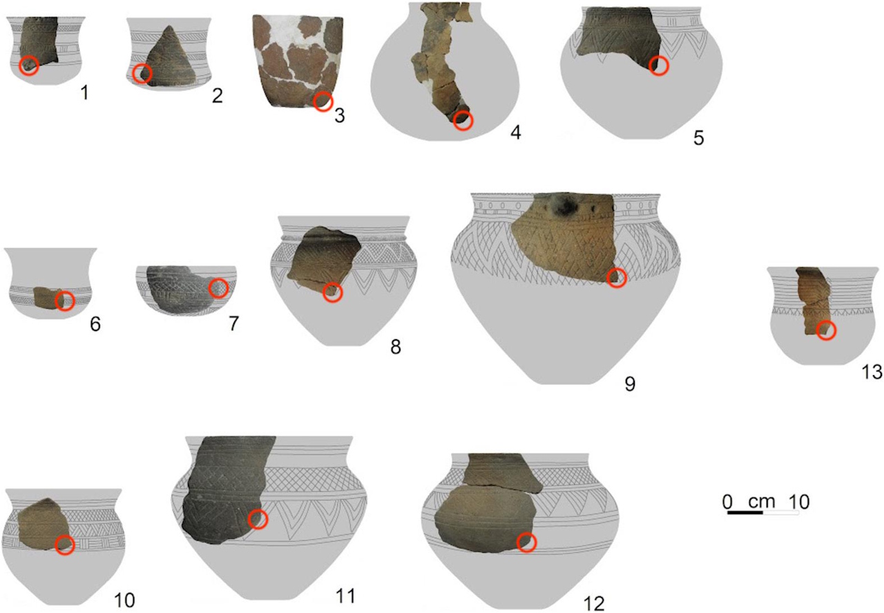 13 глечиків, уламки яких досліджували археологи. Дев'ять із них містили сліди ферментованого алкоголю. Manasterski et al. / Archaeometry, 2025