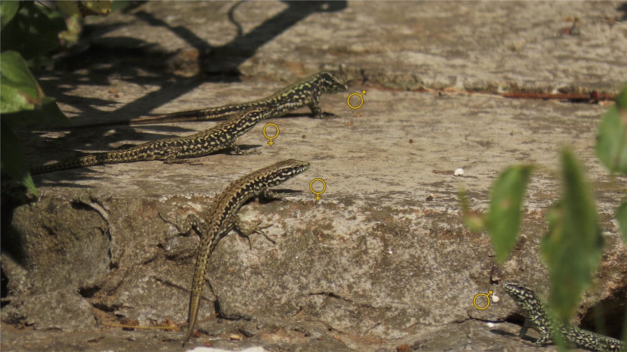 Скупчення з двох самців і двох самиць ящірок мурових, характерне для міського ландшафту. Maune et al. / Biology Letters, 2025