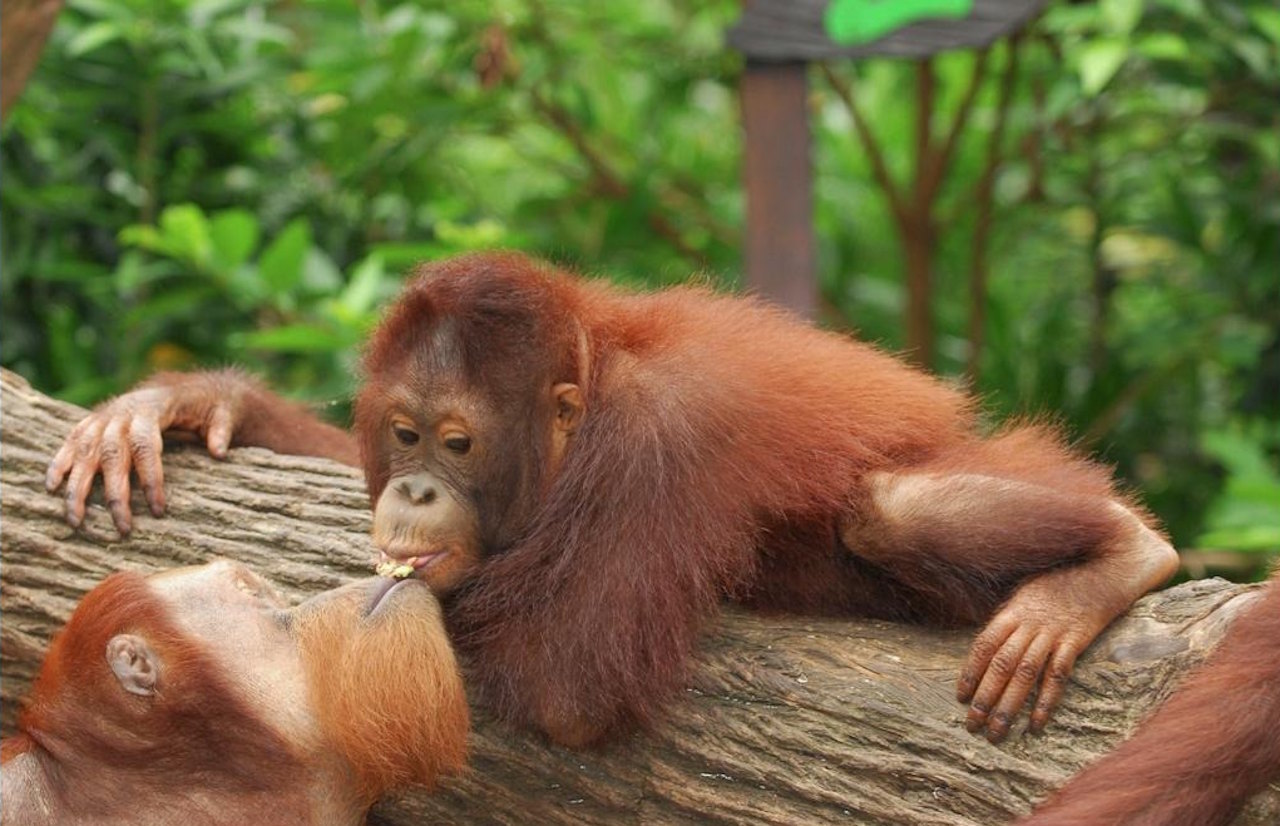 Деяку поведінку тварин, наприклад попереднє пережовування їжі для дитинчат орангутангів, можна сплутати з поцілунками. Sunsetman / Shutterstock