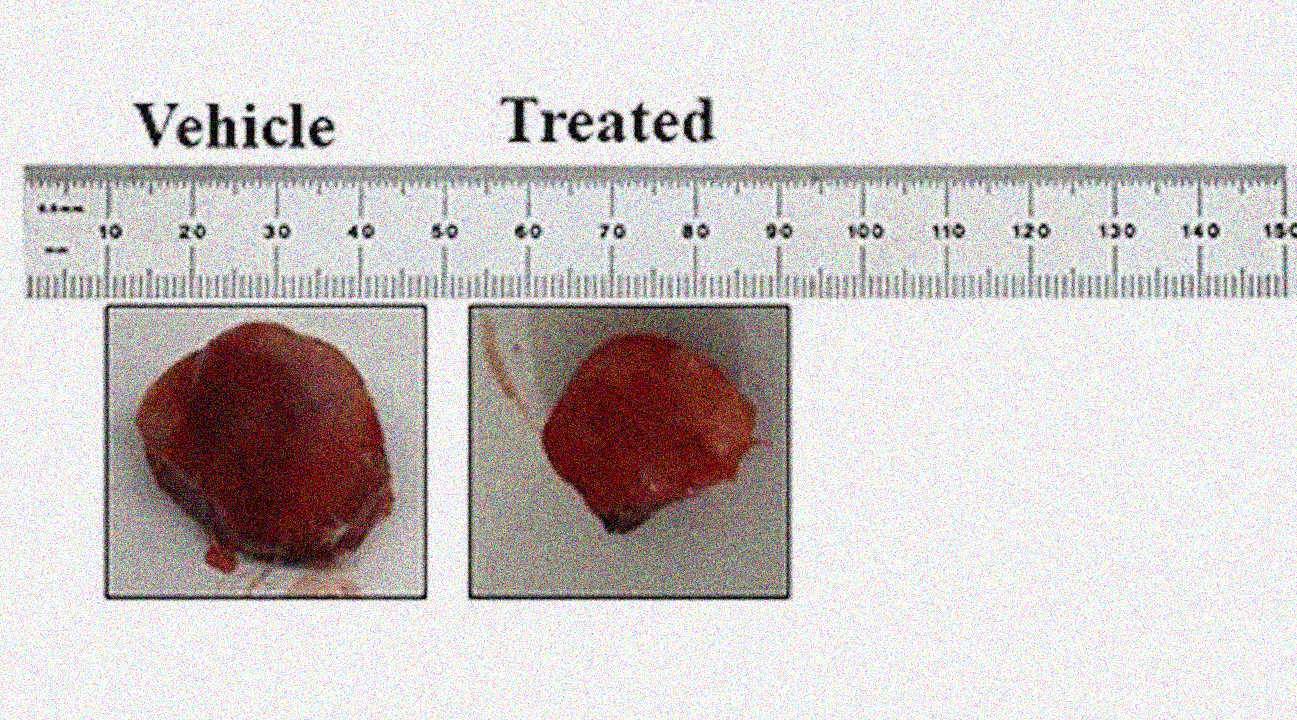 Пухлини нейробластоми після видалення з організму мишей із контрольної групи (зліва) і лікованої BA-101 (справа). Ojha et al. / Braine Medicine, 2026