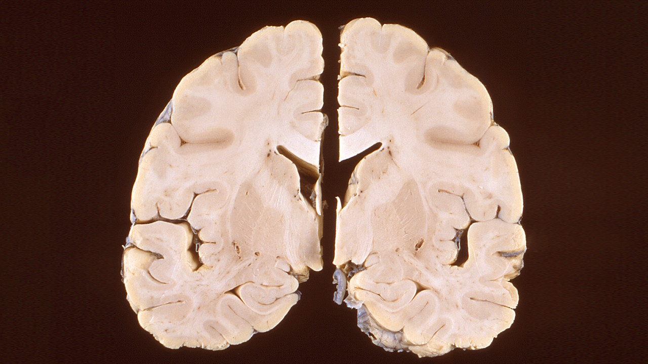 Зріз мозку людини з вірусним захворюванням нервової системи. На відміну від шизофренії та біполярного розладу, інфекційні захворювання залишають у мозку чіткі сліди, які можна використати для їхньої діагностики. CDC / Brian W.J. Mahy