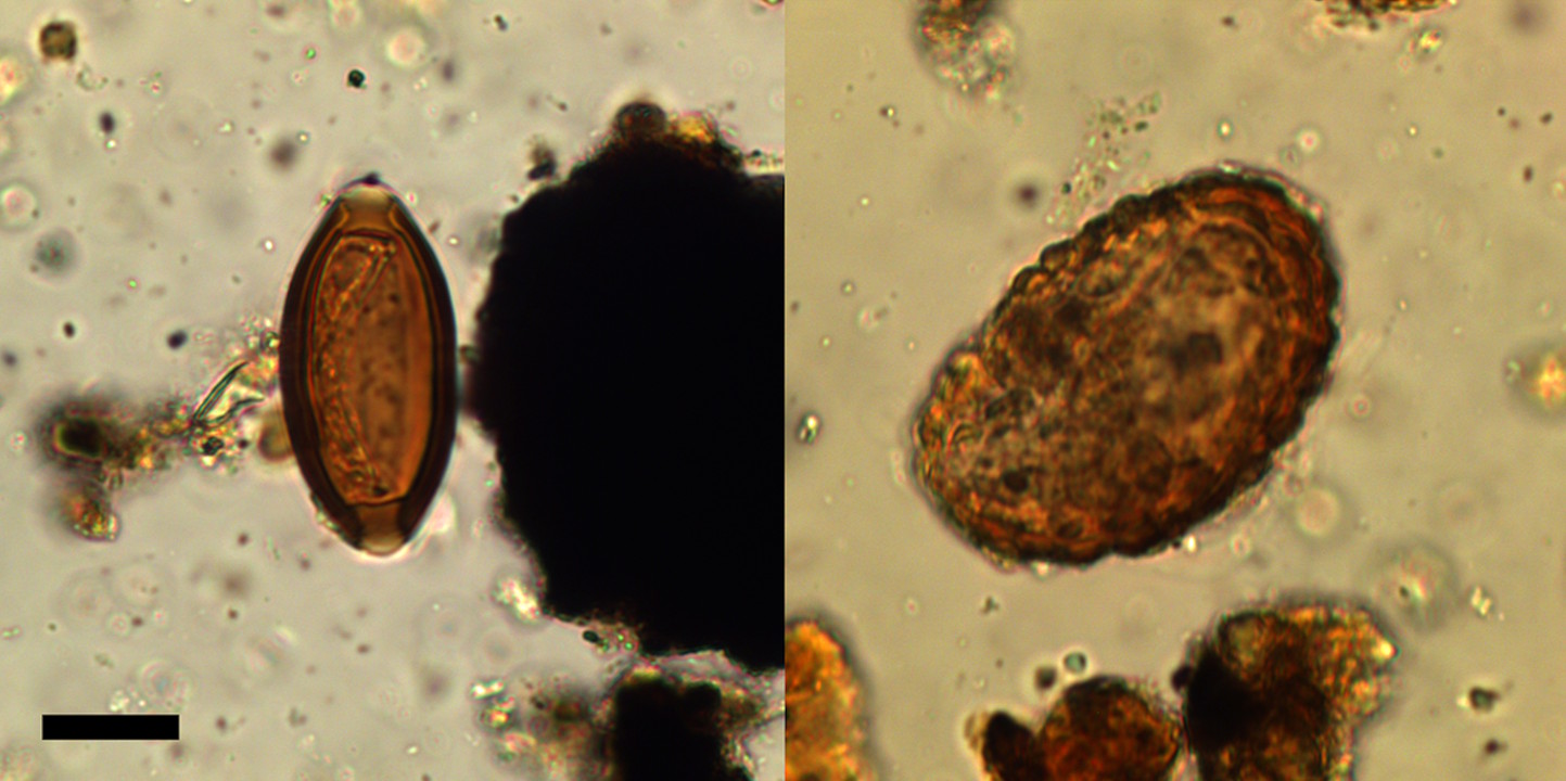 Яйця паразитичних червів, що спричиняли хвороби римських солдатів на півночі Британії. Ledger et al. / Parasitology, 2025