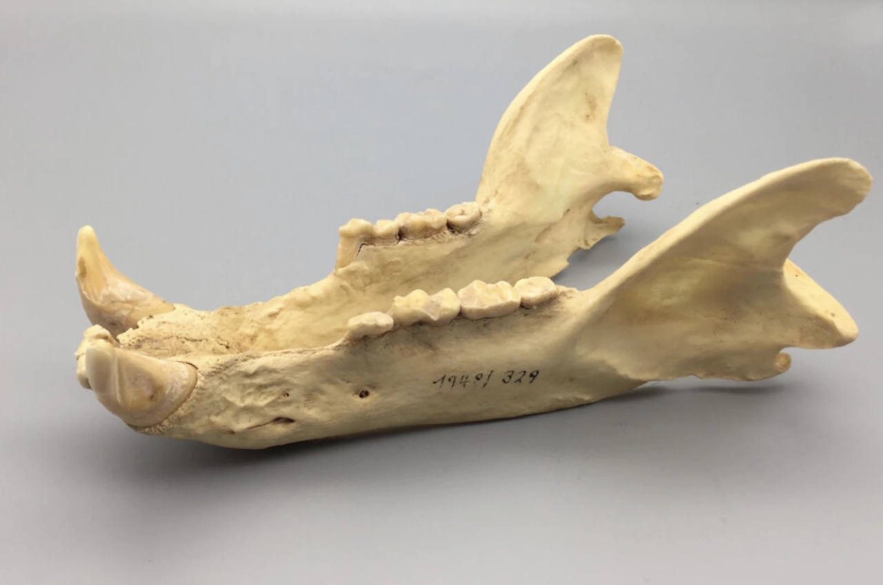 Нижня щелепа білого ведмедя, який зберіг збільшені кутні зуби попри майже повністю м'ясний раціон. Katja Henssel, SNSB / Bavarian State Collection of Zoology