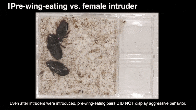 До взаємного поєднання крил пара тарганів не виявляє агресії до самиці-чужинця. Osaki et al. / Royal Society Open Science, 2026