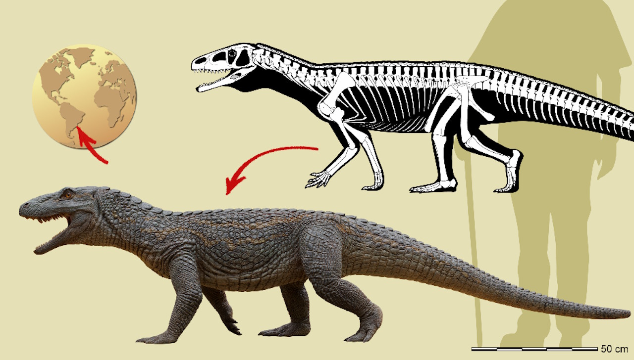У Бразилії знайшли рештки рептилії з групи, яка була предком сучасних крокодилів, алігаторів і гавіалів. 240 мільйонів років тому ця рептилія населяла регіон на межі великої пустелі — те саме середовище, у якому виникли перші динозаври. Вивчення цієї рептилії допоможе зрозуміти, як виникли сучасні крокодили та чому їхні предки пережили масове вимирання, що знищило динозаврів. Дослідження опублікували в Journal of Systematic Palaeontology.