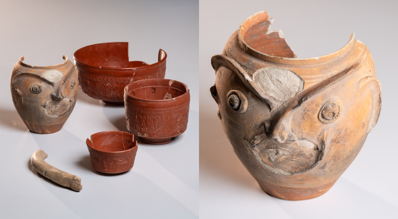 Глиняний сервіз, чаша для пиття та кістяний фалос, знайдені в колеції музею Валкгоф. Provincie Gelderland / Valkhof Museum