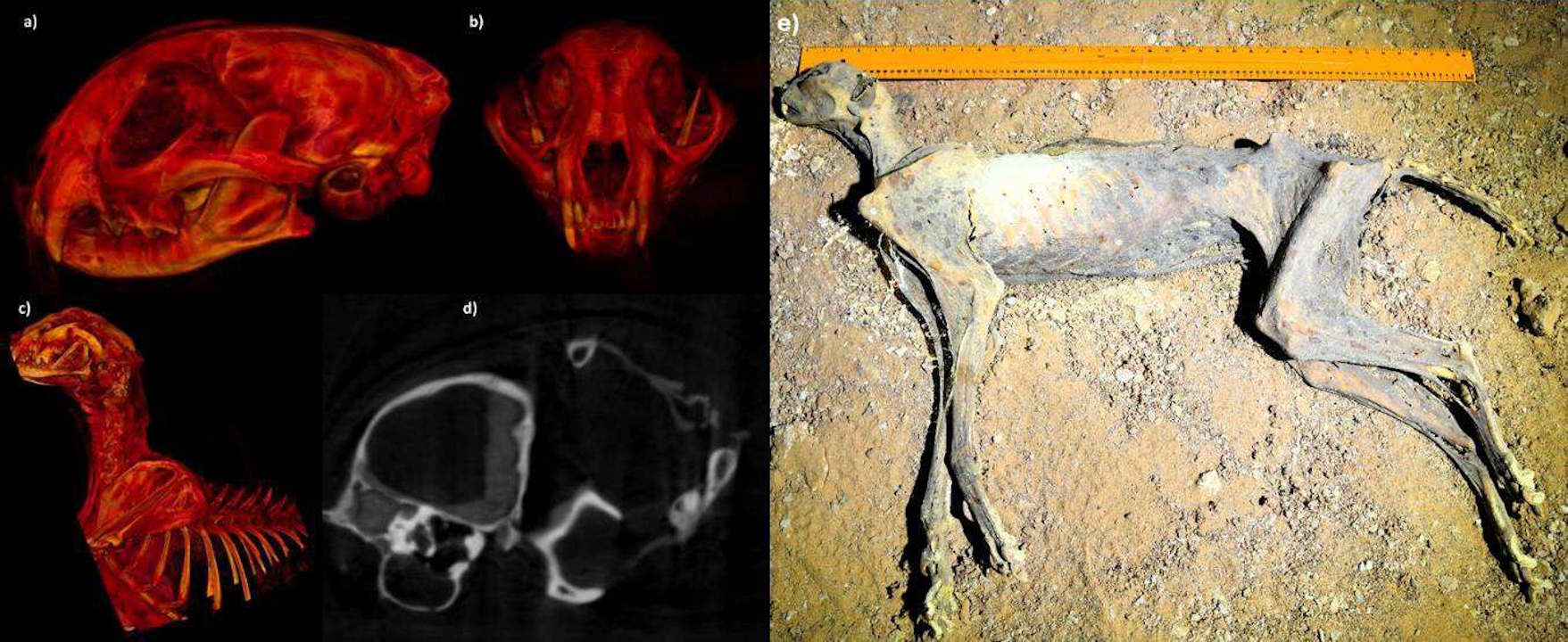 Реконструкція черепа та тканин мумії гепарда (зліва) й фото мумії на місці знахідки (справа). Boug et al., 2025