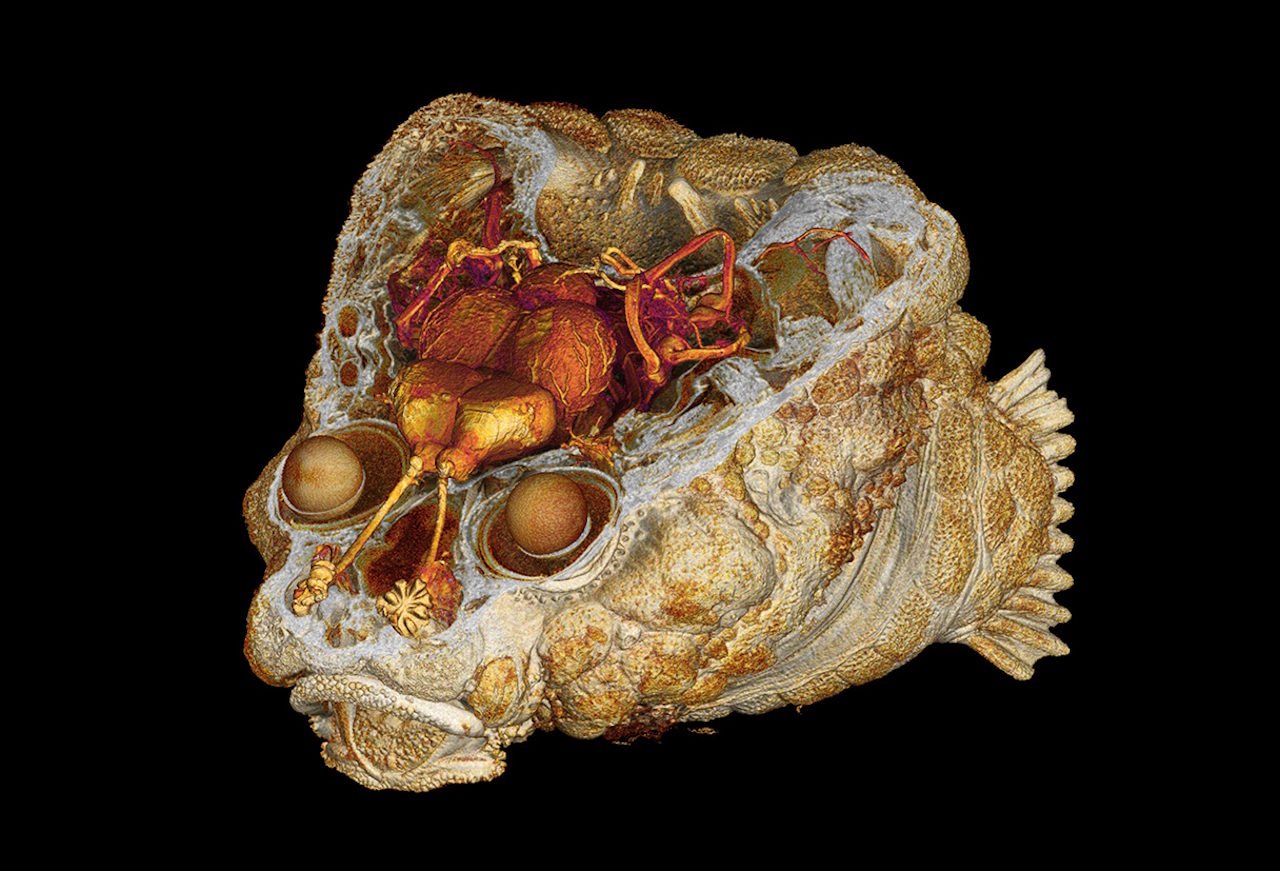 Комп'ютерна модель черепа та нервової системи риб із барабаном на голові. Заглиблення для створення звуків має майже такий самий розмір, як мозок риби. Daniel Geldof