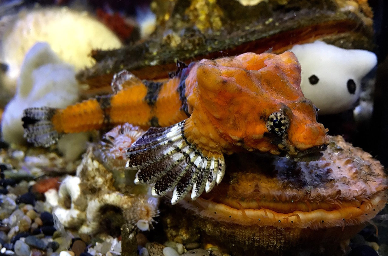 Забарвлення Bothragonus swanii дає цій рибі можливість непомітно ховатися між каменями. Rhinopias / Wikimedia Commons