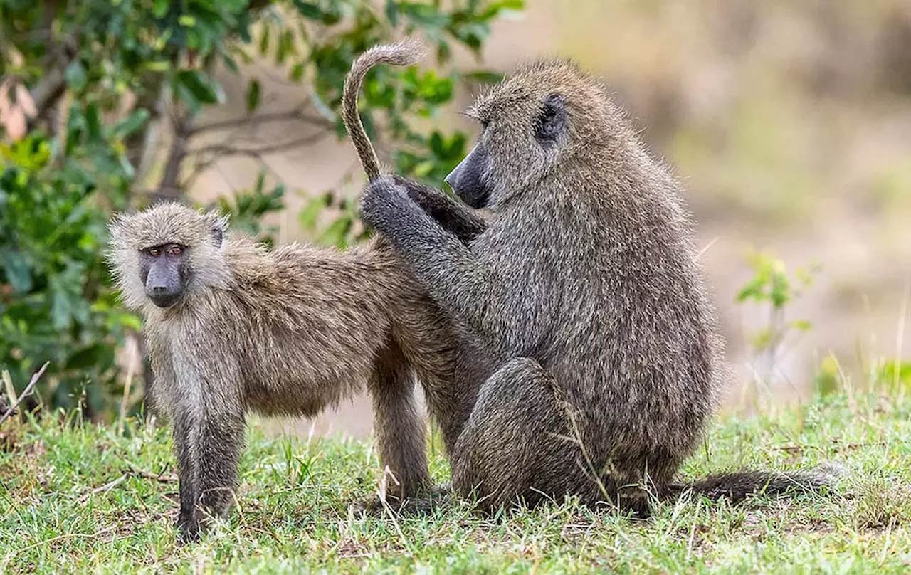 Павіани анубіси під час грумінгу — чищення шерсті, яке укріплює зв'язки між самцями й самицями. Rosemary Locock