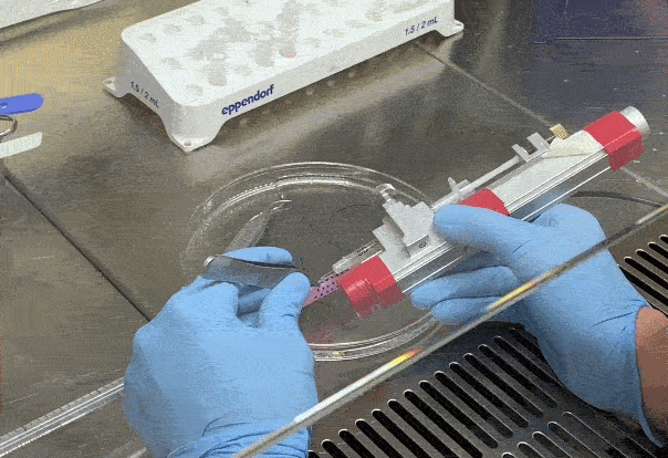 Науковець вводить м'язові клітини свині в заготовку стравоходу перед тим, як його помістять у біореактор і вирощуватимуть. Great Ormond Street Hospital for Children