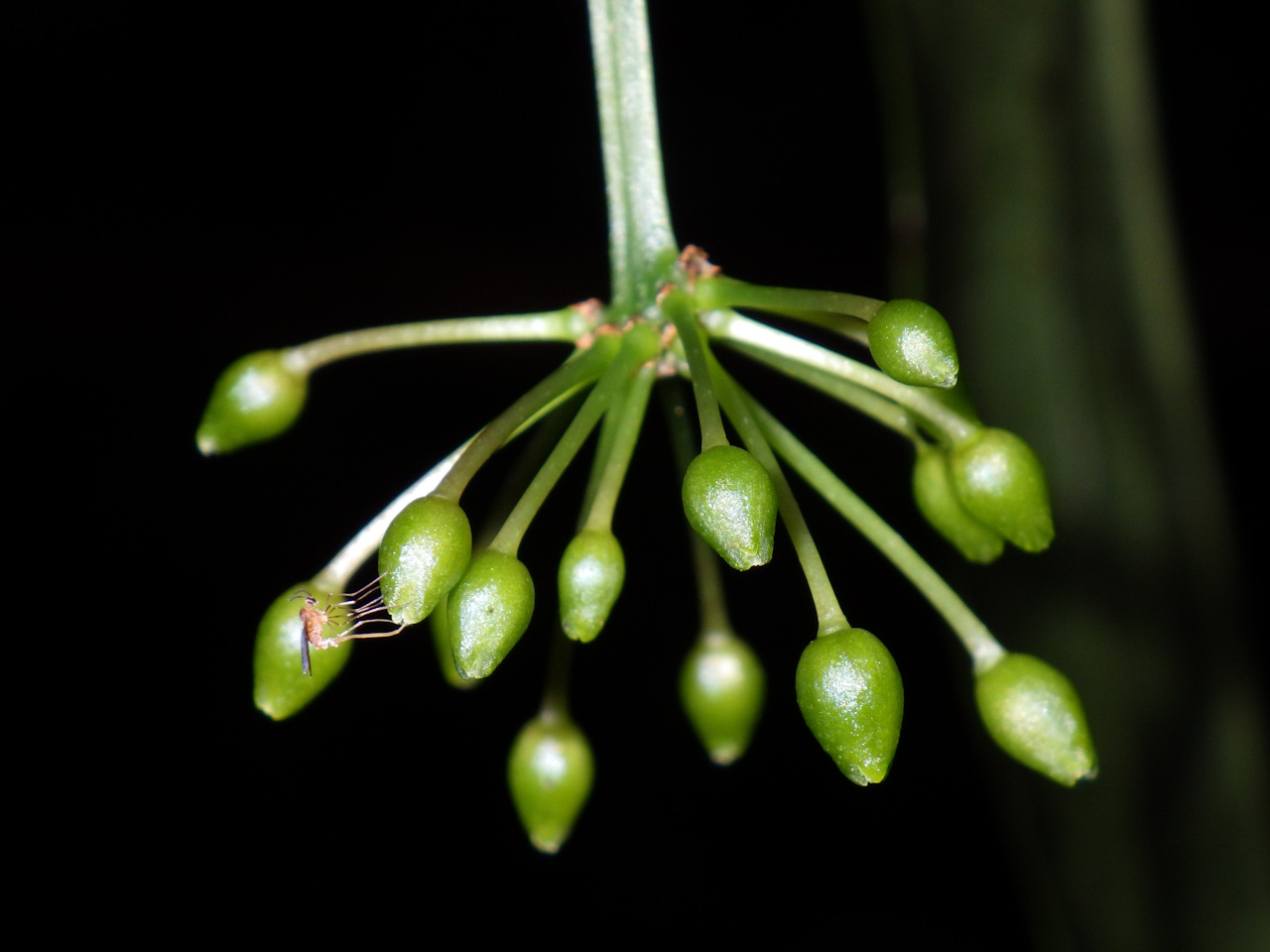 Таким чином, саме передача хімічного сигналу за допомогою дигідроедулану I виявилася відповідальною за підтримання мутуалістичного зв’язку між S. insularis і D. heterosmilacicola. Але науковці поки не знають, чому комахи надзвичайно рідко відкладають яйця в жіночі квітки, а також — чому личинки в жіночих квітках не харчуються зародками насіння, попри відсутність іншої доступної їжі.