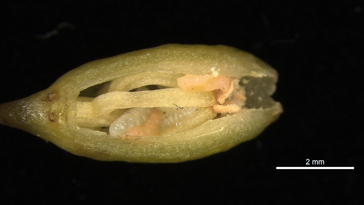 Відкладання яєць у чоловічу квітку Dasineura heterosmilacicola. Suetsugu et al. / Current Biology, 2026