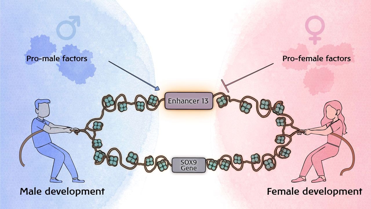 Науковці показали, що послідовність Enh13 діє як двосторонній «перемикач» між розвитком чоловічих і жіночих статевих ознак у мишей. У самців вона активується й призводить до розвитку сім’яників, тоді як у самиць вона пригнічена, щоб могли розвинутися яєчники.